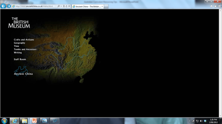 BBC – Timelines/artefacts http://www.bbc.co.uk/ahistoryoftheworld/explorerflash/?tag=51&tagname=Ancient+and+Imperial+China&/#/culture/51/
